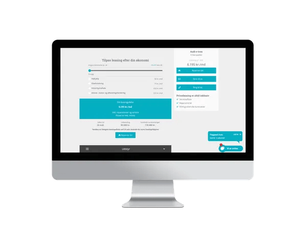 Med vores fleksible flows bliver det således nemmere for dine kunder at komme til deres slutdestination online, hvis de ønsker at lease eller minilease. Hvis drømmen er at købe, kan de kan også komme længere end aldrig før – men du får som forhandler stadig muligheden for at sælge ekstra ydelser, inden købet går endeligt igennem.