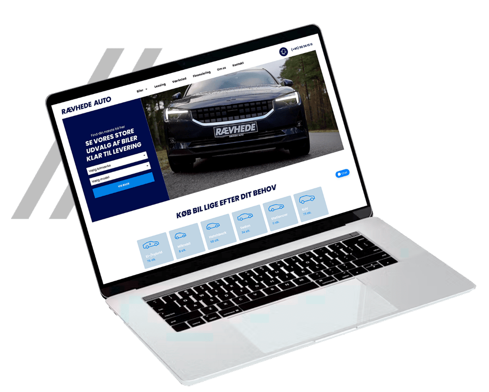 Hos os får du ikke bare et standard “syn” af dit online showroom og markedsføring. Vi er et full-service bureau og softwarehus, der er specialister i at hjælpe lige netop dig som bilforhandler. I tæt samarbejde udvikler vi et digitalt showroom til dig, der både passer til dine behov, målsætninger og målgruppe. Uden bump på vejen skaber vi resultater, som du kan følge med i, når vi dagligt sender dig et overblik.